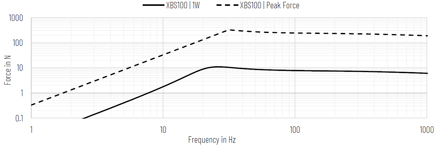 Don’t like choosing between power or size? We don’t either. The XBS100 eliminates that trade-off — delivering the full-force impact of a high-power bass shaker in just 30% of the volume. With 500W max power, ±12 mm excursion, and up to 324 N peak force, the XBS100 produces low-frequency impact typically reserved for much larger, bulkier transducers| Long-term Max Power | 500 W |